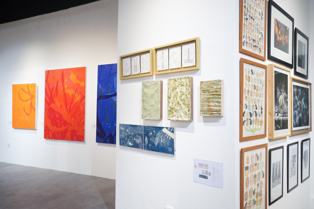 Kertas, meskipun tipis dan rapuh, juga menjadi medium perlawanan yang subtil namun mendalam. Dalam subtema Layers of Resistance: Paper as A Site of Protest and Subversion, Arahmaiani menghadirkan tiga lukisan akrilik monokromatik dalam seri Suara Alam (2024), masing-masing dengan simbolisme yang khas. Pada Suara Alam 1, tergambar satu pohon beringin yang berdiri kokoh, melambangkan daya tahan yang mengakar. Sementara di Suara Alam 2, satu pohon dengan batang dan ranting bercabang berdiri dengan bulan di latar belakang, menciptakan suasana meditatif dalam siklus alam. Adapun Suara Alam 4 menampilkan tiga pohon cemara yang berdiri terpisah, menekankan isolasi sekaligus ketahanan dalam kesendirian. Dengan menggunakan kertas—bahan yang berasal dari pohon itu sendiri—Arahmaiani menegaskan bahwa alam berbicara, tentang daya tahan dan perlawanan sunyi, dengan caranya sendiri meski sering diabaikan.